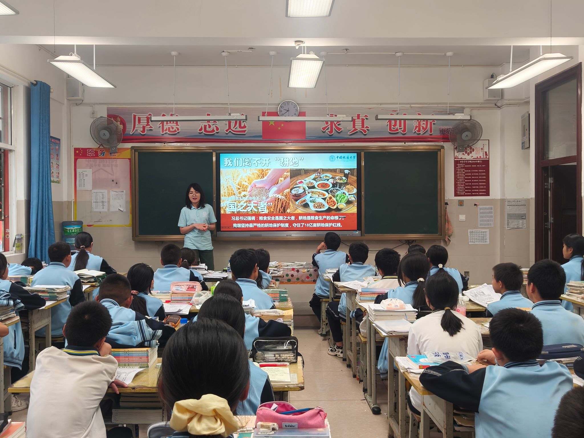 研究生支教团成员周佳贺正在给同学们上一堂生动的“土地知识课”。通过案例解析与互动问答,她系统介绍了我国土地资源的稀缺性、重要性及保护紧迫性。“以前只知道土地种庄稼,现在明白了每一寸耕地都关乎饭碗安全,”一名学生在课后表示,“要从小养成珍惜土地的习惯。”