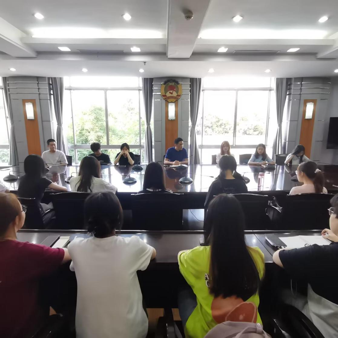 2021级公共行政系本科生暑期实习启动仪式于武汉市洪山区政府举行。实习单位负责人就此次实习开展一次相关会议,洪山区机关工委办公室主任—陈主任简要介绍了洪山区基本情况后,向同学们提出了四点要求:第一,严格遵守机关单位规章制度,做好分配任务;第二,注意着装得体,注重言谈举止;第三,坚守保密纪律;第四,注重安全,在通勤途中注意自身安全。主任讲话过后,区政府工委工作人员再次强调本次实习注意事项及实习纪律,并向各位同学介绍实习单位分配情况,相关单位负责人前来引领各单位实习生前往具体实习部门。