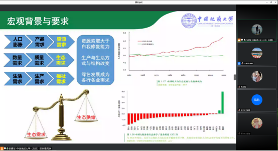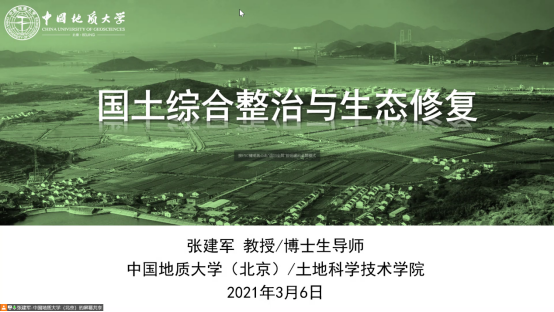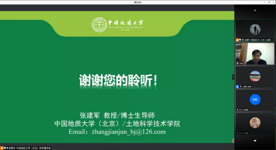 做学术交流,张教授于腾讯会议平台面向土地资源管理专业全体师生作题为《国土综合整治与生态修复》的学术报告。报告会由副院长龚健教授主持,王占岐教授作总结发言,土地系逾170名师生于线上参加此次报告会。