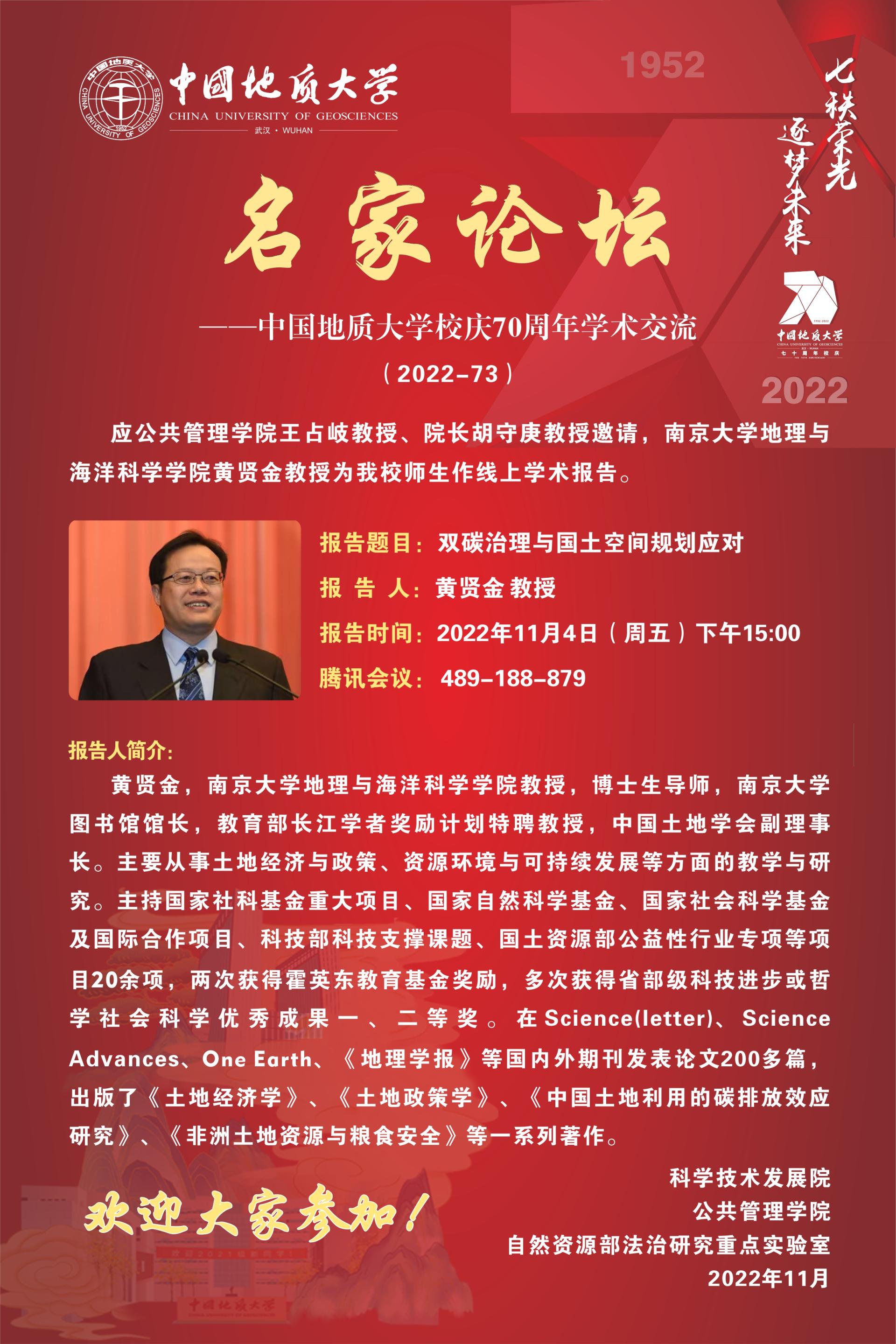 【讲座预告】双碳治理与国土空间规划应对(2022年11月4日)