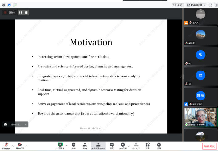 师生作题为“从计算城市科学到城市人工智能”的线上学术讲座。讲座由胡守庚院长主持。