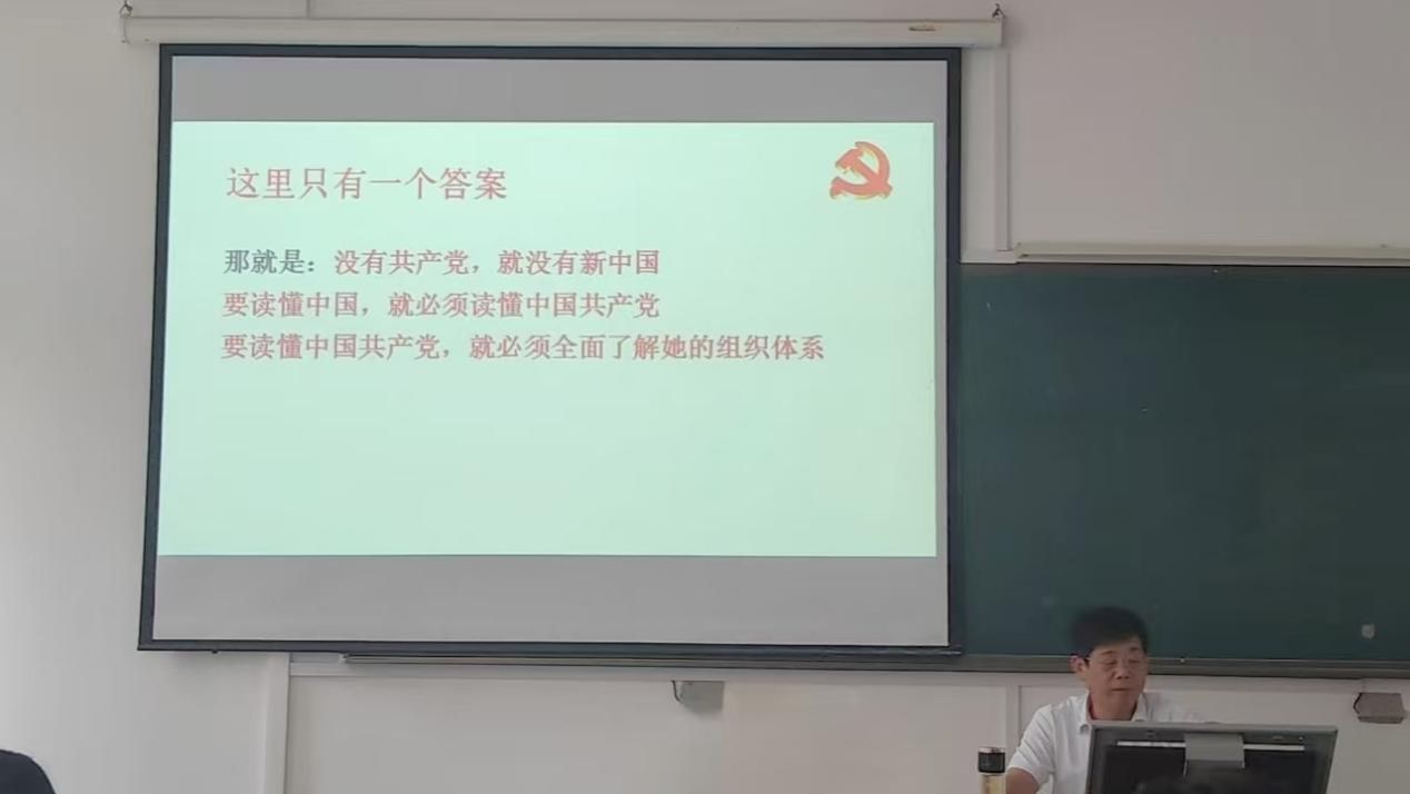 秭归在站实习师生讲《中国共产党的组织体系建设历程及其启示》主题党课。