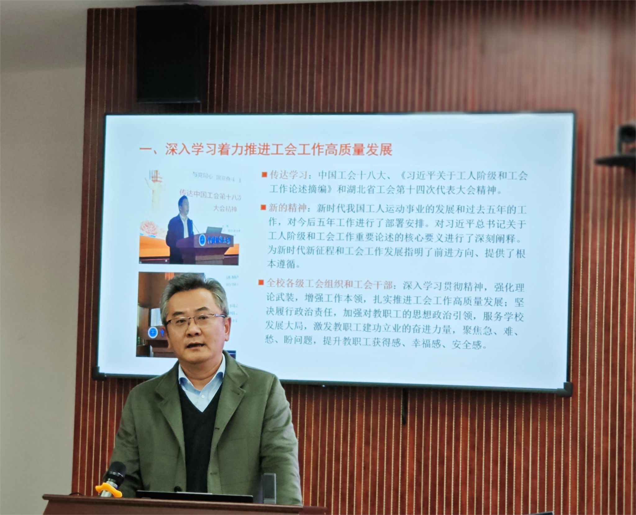 会议第四阶段,进行第三届教职工大会第三次会议暨第三届工会会员大会第三次会议。工会主席曾伟向全体工会会员报告工会工作,院长胡守庚作学院财务公开报告。大会以举手表决方式选举彭涛教授为学院新的工会主席。