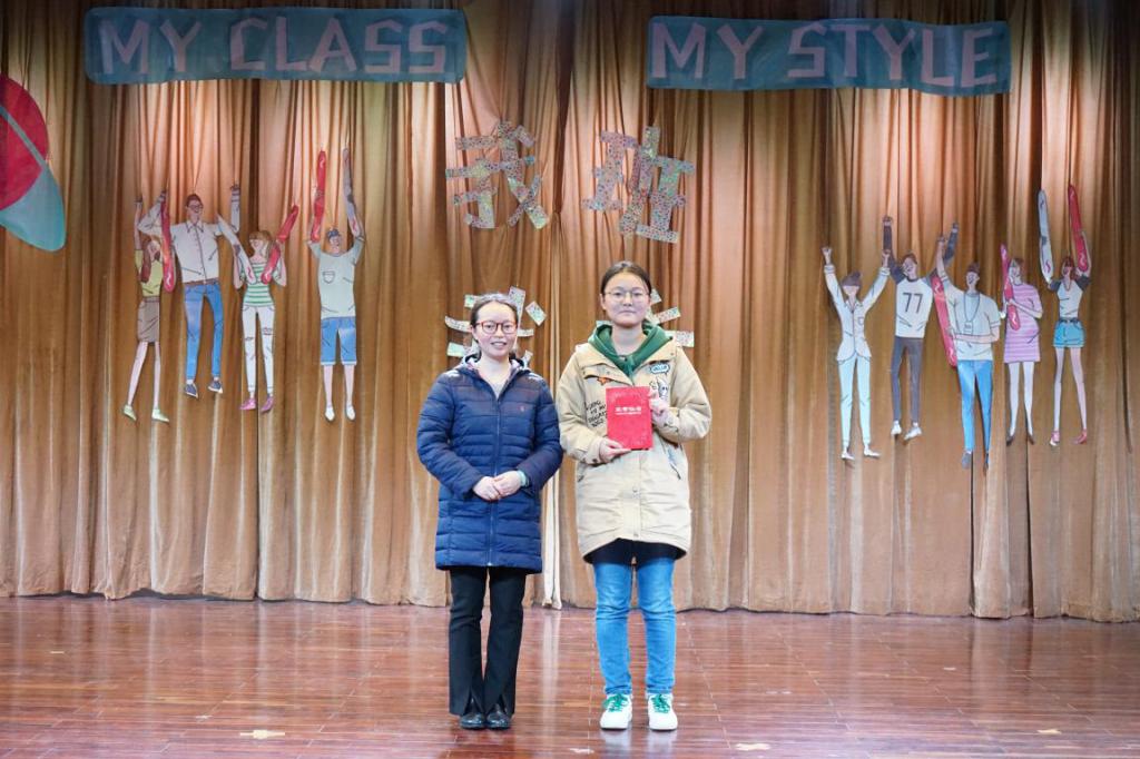 法学系党支部书记宦吉娥为“最佳人气奖”获奖班级175182班颁奖;