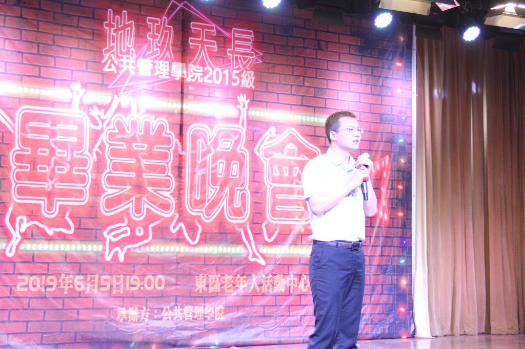 在欢乐的吵闹与兴奋的尖叫声中,辅导员余尚蔚带来了他对毕业生的寄语,接地气的演讲里是余老师对大家未来的期盼和相伴四年的不舍。