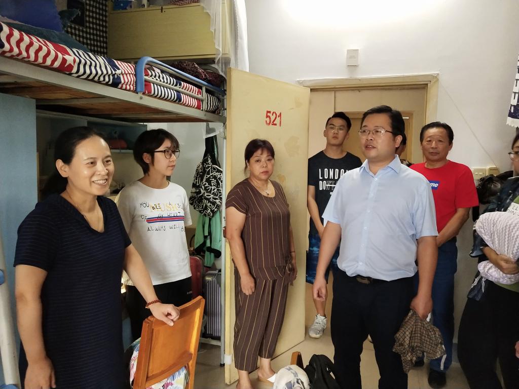 研究生和本科生宿舍进行了走访,询问新生们的安顿情况。走访过程中,与会领导进一步和学生、家长进行沟通,为家长答疑解惑,为同学送去关爱与慰问,也让新生们感受到了来自学院的殷切关怀。