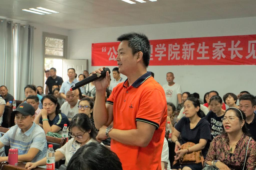 2019级新生家长见面会在公管新楼101报告厅召开。本次见面会由才惠莲副院长主持,院长王占岐、副院长王忠、党委副书记刘国华、各系负责人或专业教师、2019级新生兼职辅导员李文伟以及近百名学生家长参加。