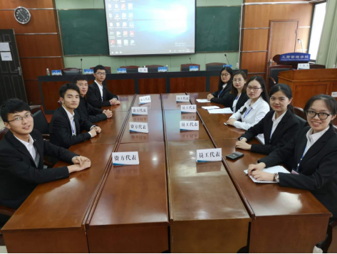 曾伟教授、谢小青副教授带领十名学生前往中南财经政法大学参加首届湖北省高校模拟集体谈判大赛。老师同学们斗志昂扬,对即将到来的比赛充满信心。上午八点左右,主办方举办了开幕式。经过短暂的候场,上午十点,劳方代表队和资方代表队分别参加了初赛,在赛场上,同学们与对方针锋相对,据理力争,充满了竞争精神和拼搏意识,赛出了风采,赛出了水平。经过评委合议,下午三点半,劳方代表队成功晋级决赛,与中南财经政法大学对战,针对YT公司劳资双方就四个议题展开了激烈的交锋,现场十分精彩。经过评委的评审,我员曾伟教授和谢小青副教授获得优秀指导教师,劳方代表队最终荣获二等奖,资方代表队荣获三等奖,公共事业管理专业孙雨霖同学荣获优秀谈判员一等奖。