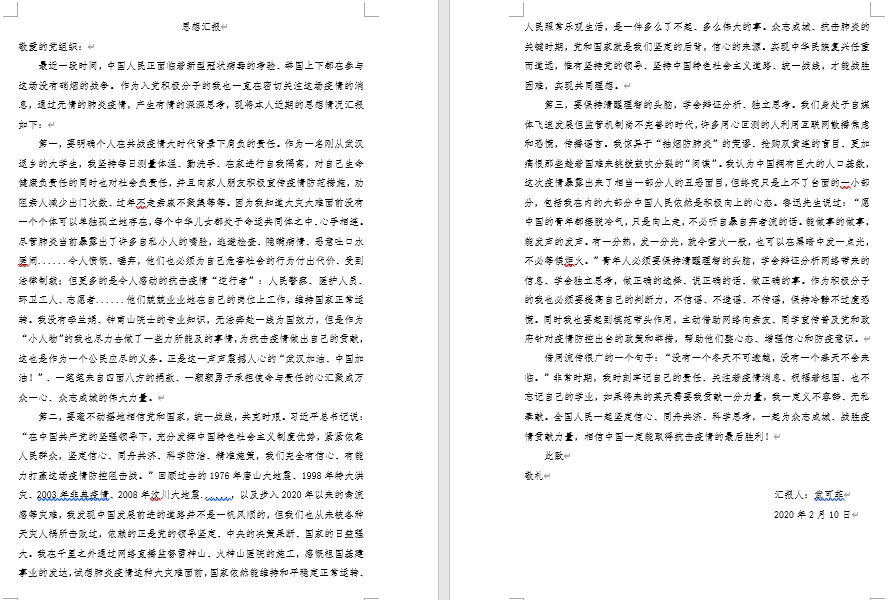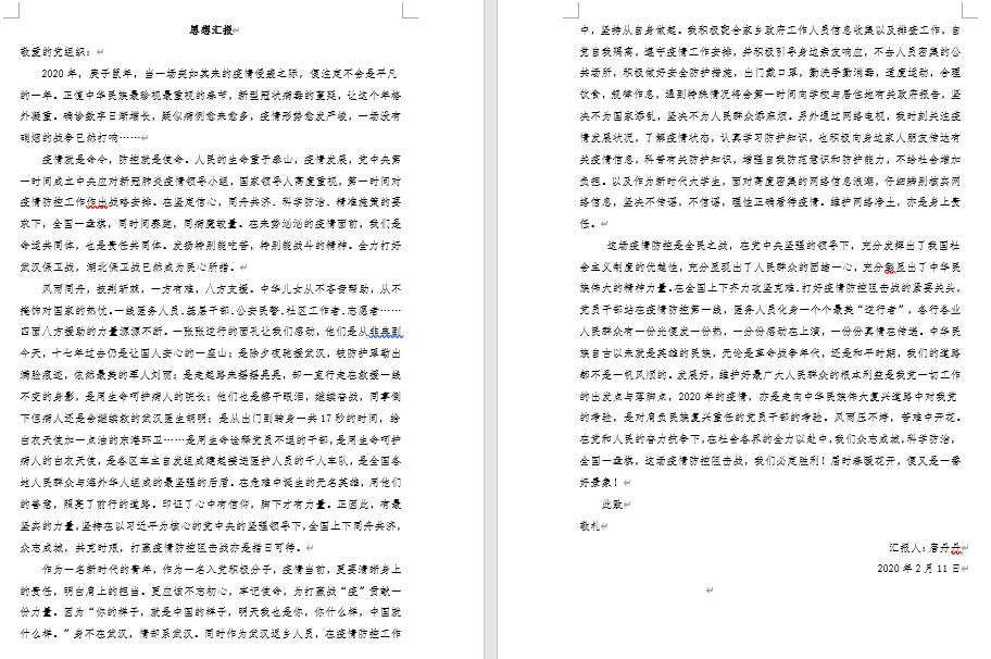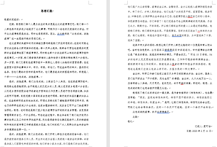 疫情防控是一场保卫人民群众生命安全和身体健康的严峻斗争。面对疫情防控的人民战争、总体战、阻击战,党员如何认识,如何理解,如何成长,如何奉献,对于检视一名党员是否在成长,考验一名党员是否合格非常重要。据此,学院党委号召广大学生党员认真撰写“众志成城 战胜疫情“专题思想汇报,向党组织报告自己成长学习状态。支部全体成员积极响应、主动参与,共提交专题思想汇报79份,思想汇报立场坚定、内容充实,情感真挚,体现出支部广大成员对于疫情防控的全心关注,对党中央及各级党委政府要求部署的认真学习,对于坚决打赢疫情防控阻击战的坚定信心。