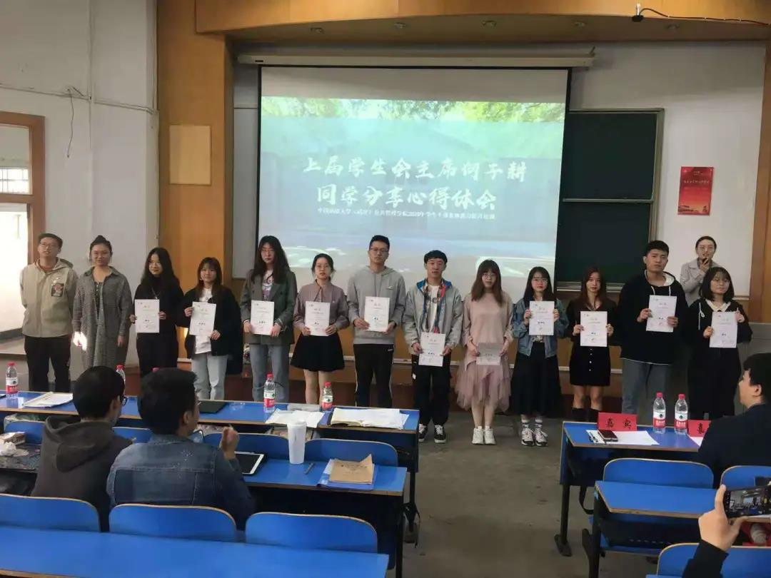 随后,党委副书记刘国华颁发了对上届主席及上届部长的聘书,同时上届学生会主席何子耕和上届实习就业创业中心部长陈泽贤发表了对新成员的期望。何子耕学长在讲话中指出工作当中摩擦是正常的,这表示着团队中的每个人都希望为团队做出贡献,他还表示我们要更加团结,不要畏惧困难与挑战;陈泽贤学长则重点强调了学业的重要性,告诫我们不要在挂科之后再后悔,要提前做准备,希望我们能够更加重视学业。