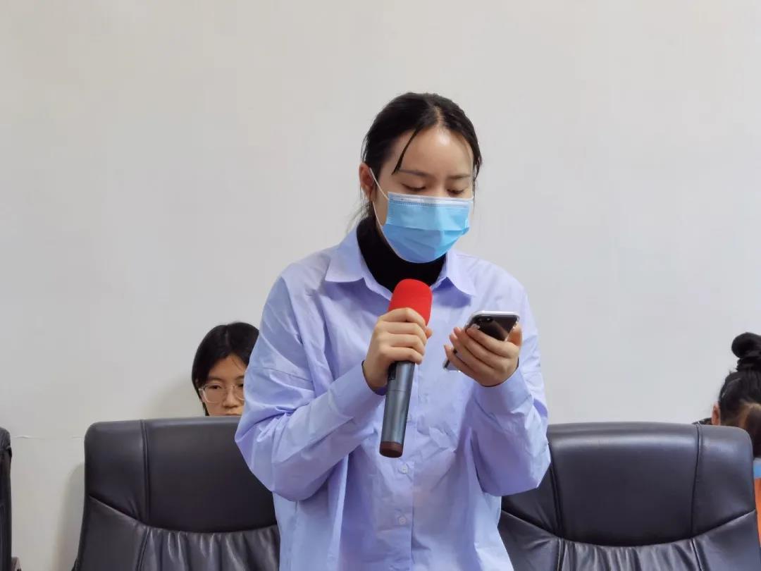 公共管理专业本科生邢佳宜同学围绕如何加强和改进大学生思想政治教育工作展开讨论。她提出,首先要以理论为基础,需要教师根据课本内容,结合当地环境,开展相关实践活动;第二要让学生融入思政课,可以让学生选择某一章节自行讲解或点评当下时事;第三要学校和学院等单位要积极参与对思政课的支持和实践的推广;第四要利用当地红色资源优势,更好提高大学生思想政治教育的效率。
