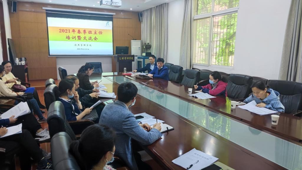 在B209会议室举行2021年春季班主任培训暨交流会。会议由党委副书记刘国华主持,本科各班班主任和全体辅导员参加培训。