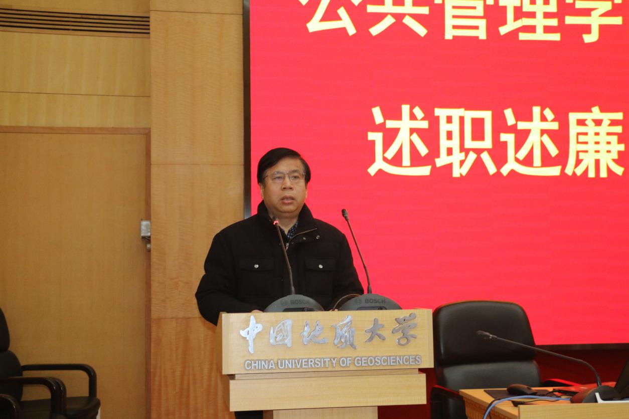 第二项,院长胡守庚代表班子述职,回顾本届班子五年来履职情况,查找存在不足及薄弱环节,提出今后学院发展举措。