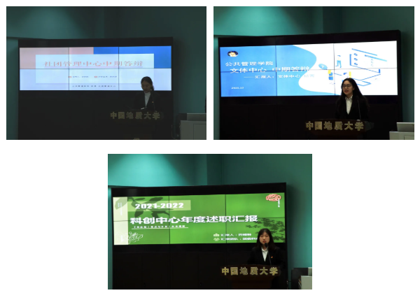 首先,社团管理中心对2021年度工作进行了总结,展现了这个最新成立部门的风采与工作成果,在严谨分析工作不足的同时,提出了相应的优化改进方案。接着,文体中心表示其将继续高质量文体活动的举办,立志成为丰富大家的第二课堂。科创中心对年度学生工作进行了详细的汇报,并反思总结,希望学院能更加注重科研实践类活动的开展以改变学院创新不足的现状。