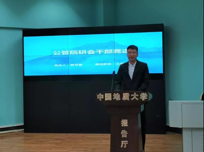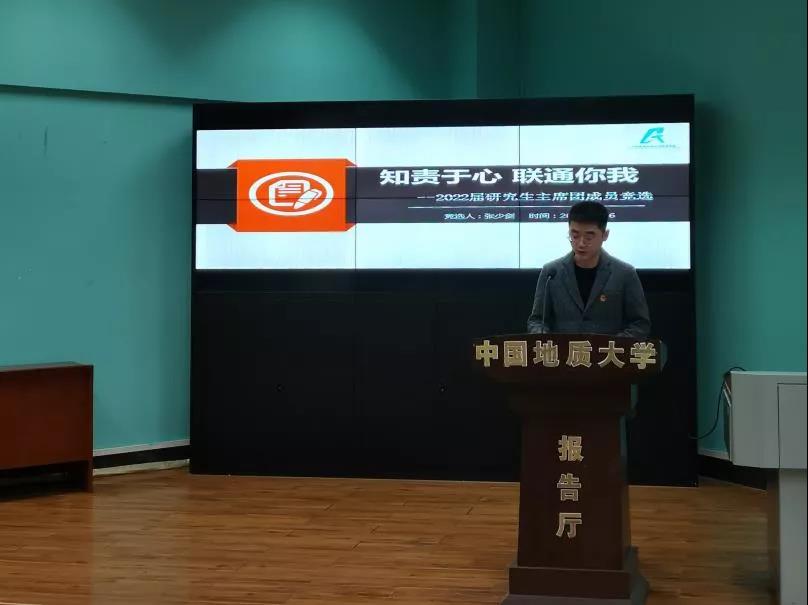 本次竞选采用5分钟PPT展示加3分钟现场提问的方式进行,共有五位候选人,分别是2021级公管专业研究生张少剑、2021级公管专业研究生廖鑫鑫、2021级法学专业研究生张育梅、2021级资源与环境专业研究生邢书宣和2021级公管专业研究生涂思欢同学。