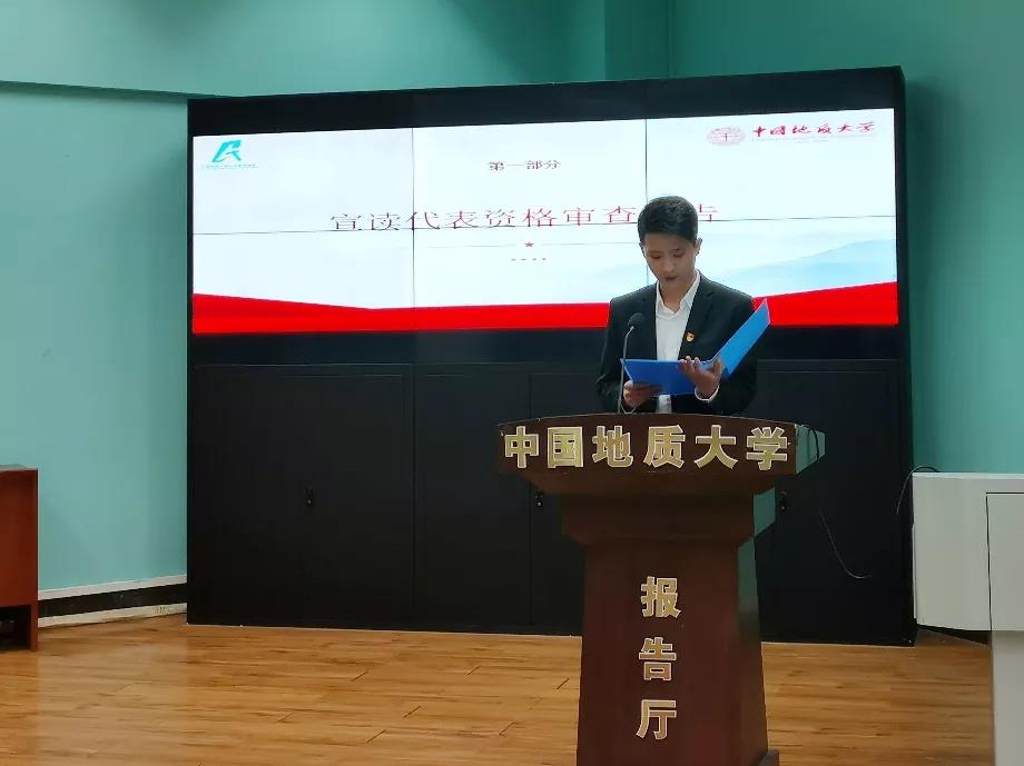 大会在雄壮的国歌声中开幕。会议起始,学院党委副书记刘国华老师和辅导员王青涛老师分别为2021届研究生会主席团成员和各部门部长颁发聘书。随后,学生团委副书记余健同学作大会代表资格审查报告,与会代表通过举手表决,代表资格有效。