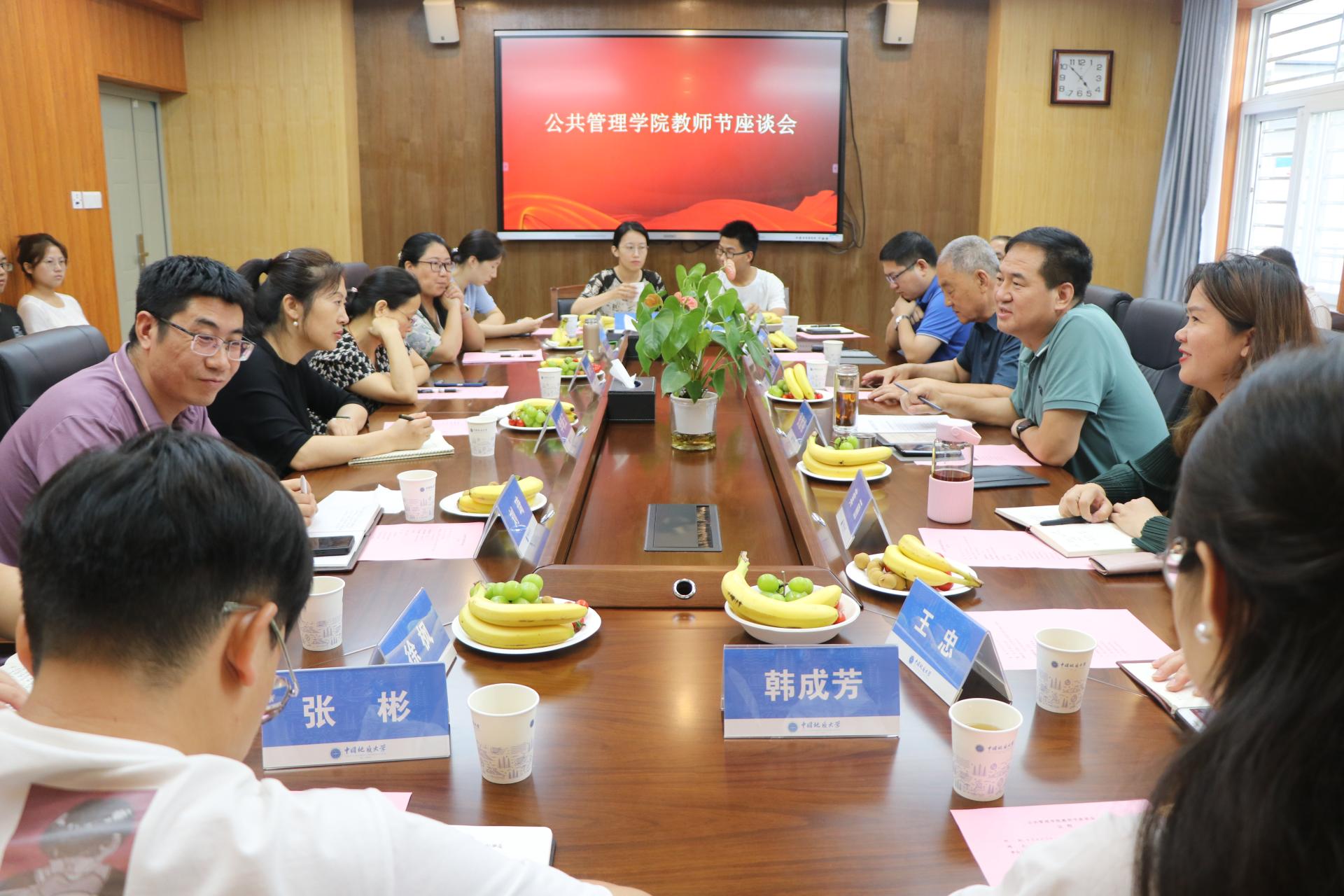 于9月8日下午16:00在北一楼227会议室召开以“躬耕教坛,强国有我”为主题的教师节师生座谈会。学院党委书记张宽裕、副院长王忠、副院长李世祥、副书记龚丽、退休教师代表王宗廷以及部分教师代表、学生代表参加会议。座谈会由张宽裕书记主持。