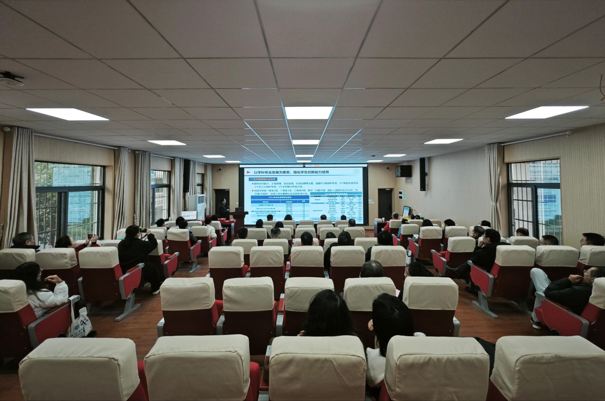 工会主席彭涛向全体工会会员报告工会工作,副校长、院长胡守庚作学院财务公开报告。公共行政系、土地资源管理系、法学系、应急管理系、自然资源部法治研究重点实验室和实验教学中心依次报告2024年度主要工作及2025年工作重点。