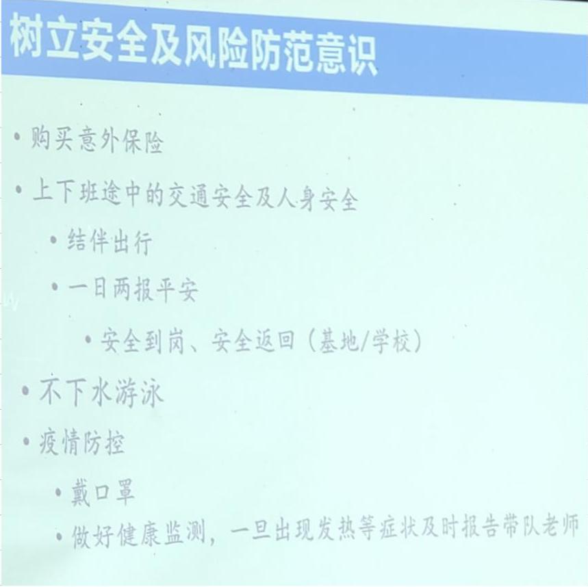 (武汉)本科实习管理办法(试行)》。其次,钱文强老师叮嘱同学们遵守实习单位对实习生的规章制度和纪律要求,努力做到实习中不迟到早退,不擅离职守,同时讲述请假的相关流程与要求。