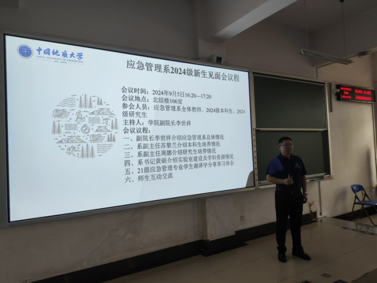 (通讯员 陈星) 9月5日,应急管理系在北区综合楼106教室举行了新生见面会,应急管理系教师、2024级本科生及研究生新生参加,见面会由学院副院长李世祥教授主持。