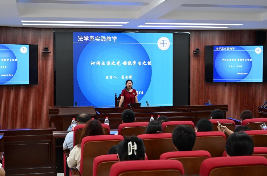 夏云娇老师以《沁润法治之光 铸就学生之能》为题,围绕“一个目标、两个内外、三个关键、四个阶段、五位一体”阐述了法学教学实践的目标与路径,为法学系本研新生未来的教学实践指明方向。