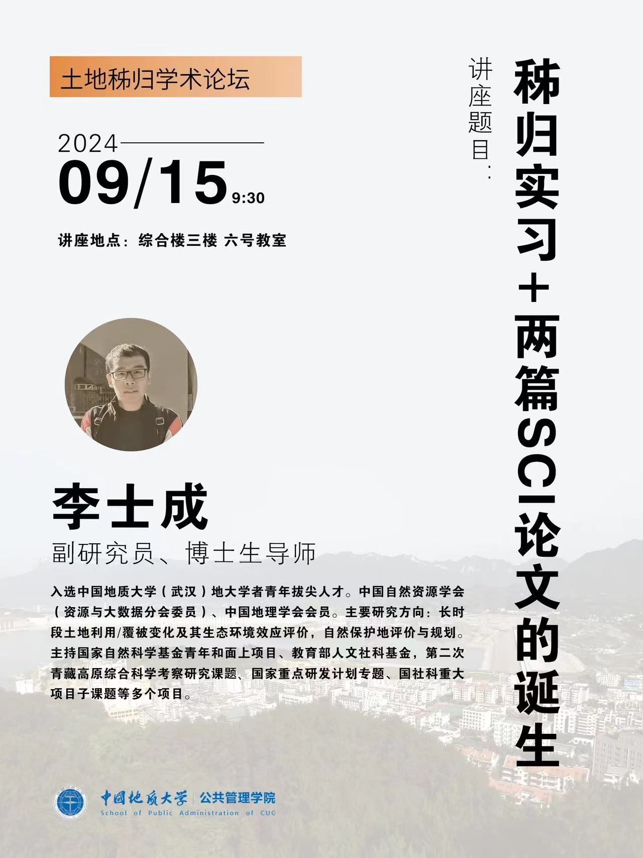 李士成老师以六年前第一次到秭归带实习时指导一位学生成功发表高水平论文的故事,讲述了专业理论研究扎根专业实践的重要性。在故事分享中,结合在秭归实习中观察到的现象,详细的讲解了专业期刊论文的分类和要求、专业论文如何选题、如何有效获得研究数据、如何选择研究方法等问题,希望同学们在学习研究中善于观察总结、敢于创新求证。
