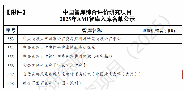 成人小说 自然灾害风险防控与应急管理实验室入选中国智库综合评价研究项目(2025)AMI智库入库名单